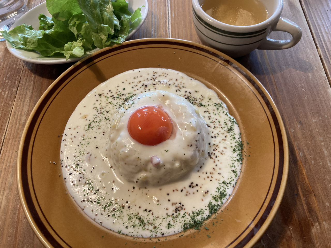 私が食べたのは、カルボナーラライスで、とても食べ応えがあり、卵黄がさらにカルボナーラをもったりさせ、とても満足いく一品でした。