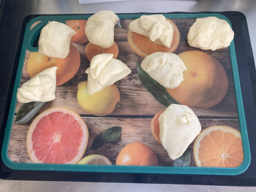 さて、週末に私は、友達からリクエストがあった¨冷やしメロンパン¨を作りました。