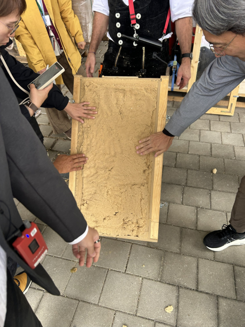 密度の調整や使用機械の仕様、日本でも使用できるか、など質問が飛び交っていました。