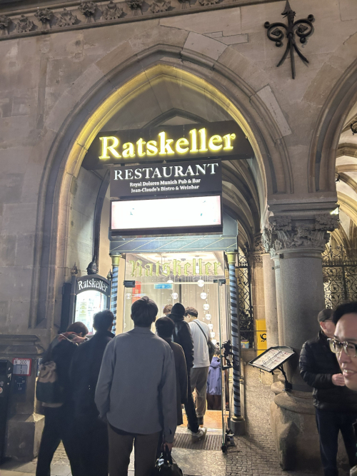 夜はミュンヘンのマリエン広場にある【新市庁舎】地下の伝統的なビアホールで夕食。