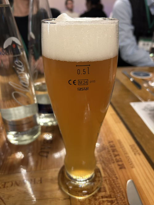 ちょっとした豆知識ですが、この0.5Lのラインより上まで注ぐというルールになっており、下回ると法律違反になるそう。結果少し上まで注がれています!