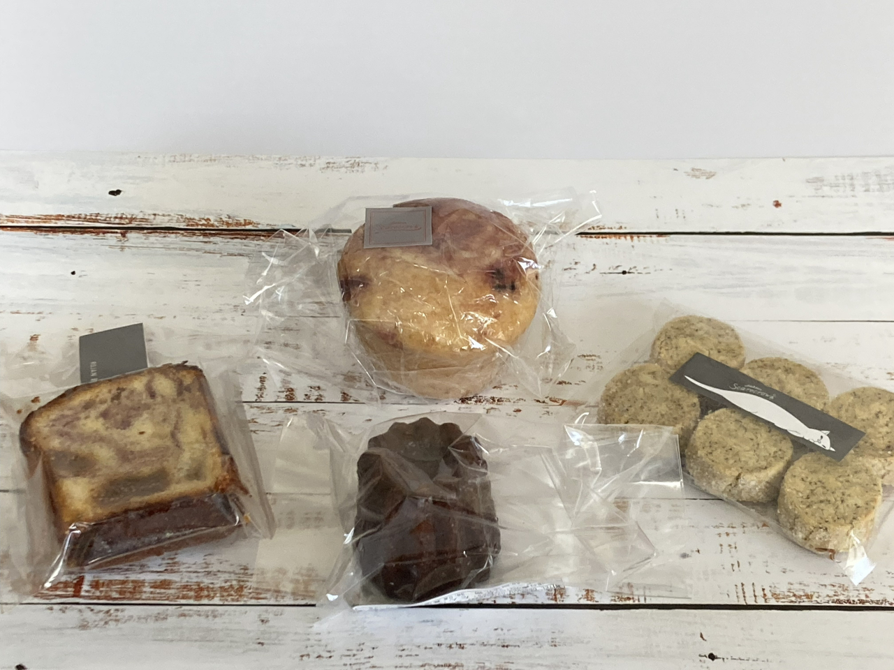 どのパンやお菓子も美味しそうで、かなり迷いましたが、選んで買ったパンがこちらです(このほかに2つパンを買いましたが、お昼に食べてしまったので写真にはありません)。