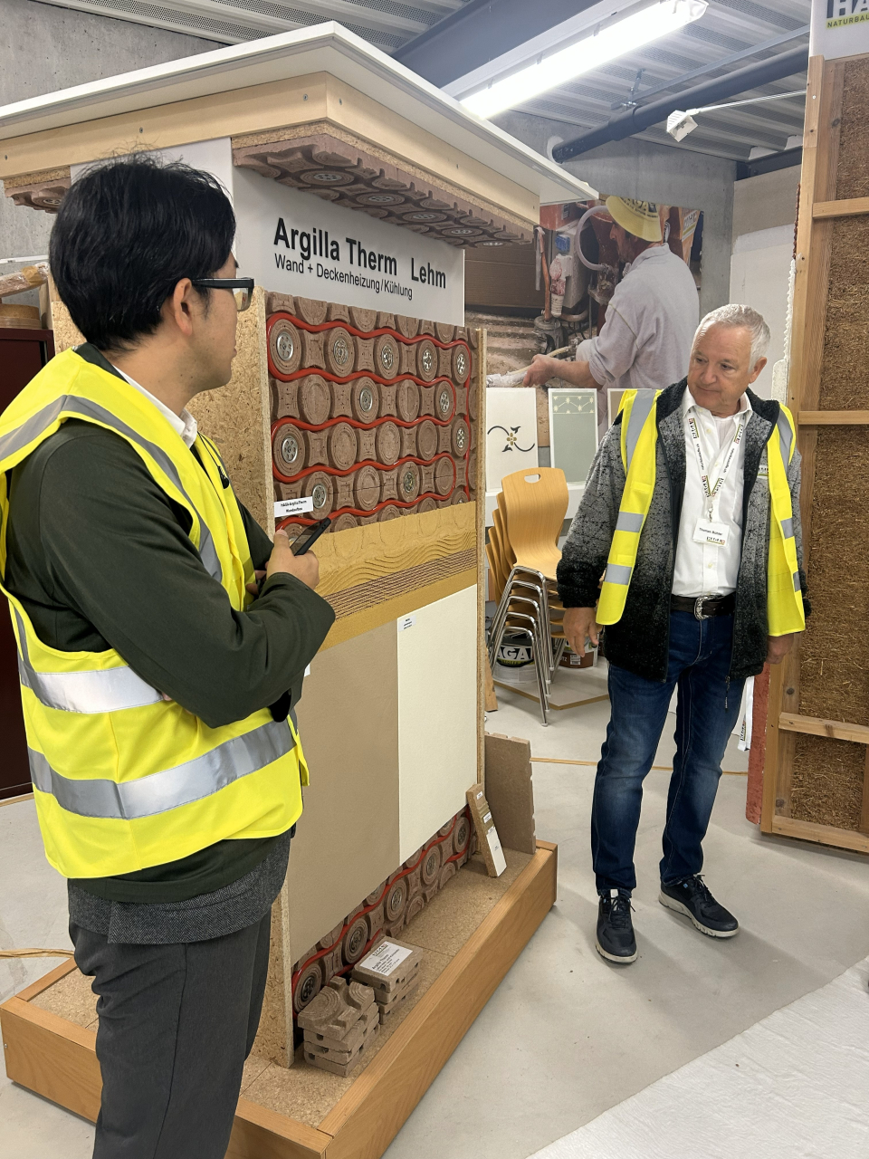 午前中は、自然素材メーカーのHAGA社を訪問。従業員は約40名と決して大きな会社ではありませんが、ここにはスイスらしい【バウビオロギー(建築生物学)】の思想が色濃く根付いていました。