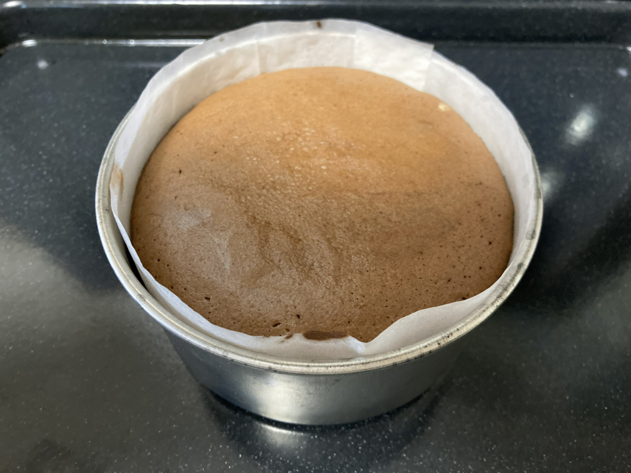 12cmの丸型で焼いていくのですが、板チョコ3枚分の重さのチョコレートが入った濃厚なケーキです。