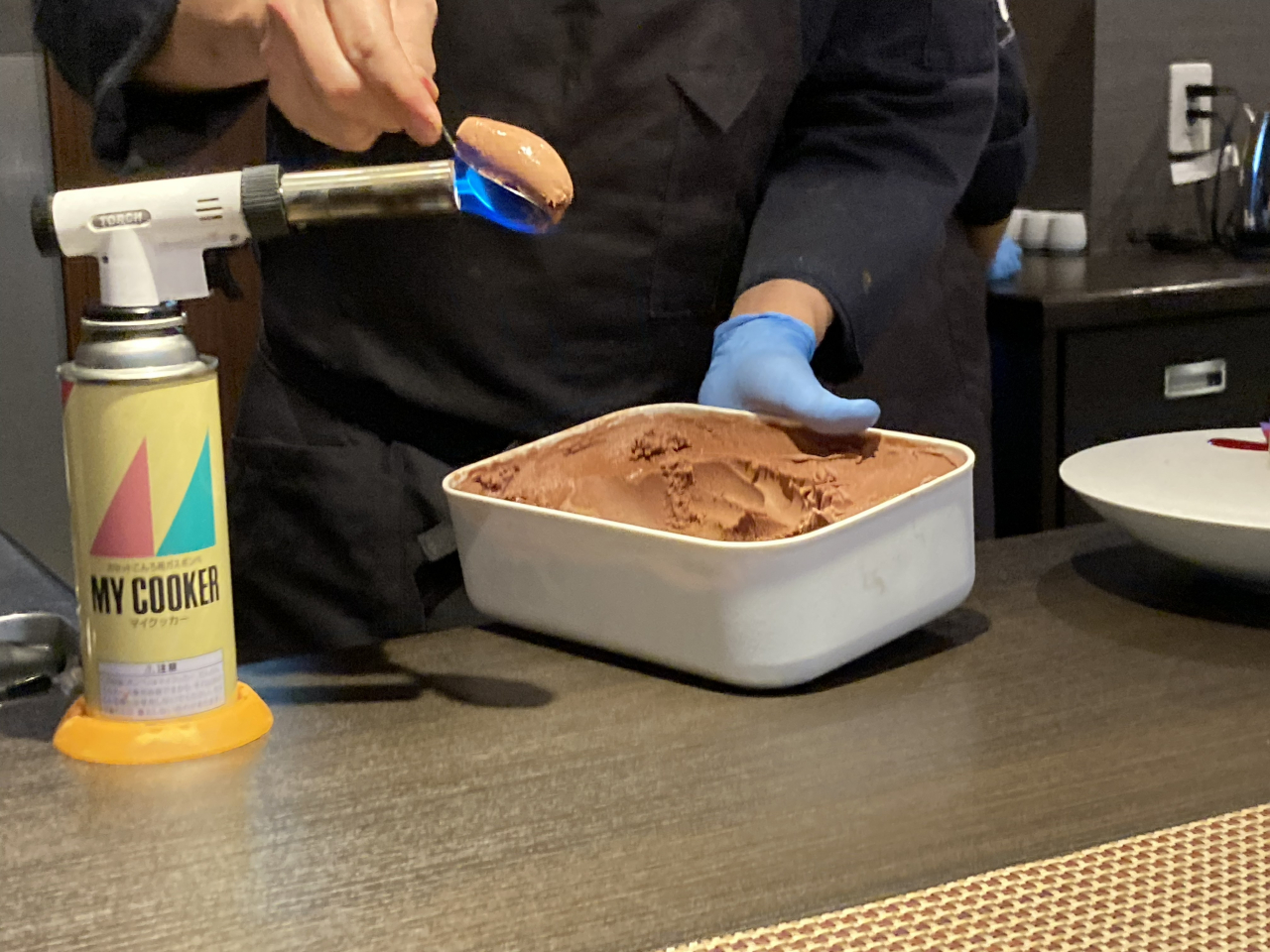 また、アイスの素と液体窒素を入れてかき混ぜ、カリカリのアイスを作っていく様子も圧巻で、原料のバターやミルクが効いてとても味わい深かったです。