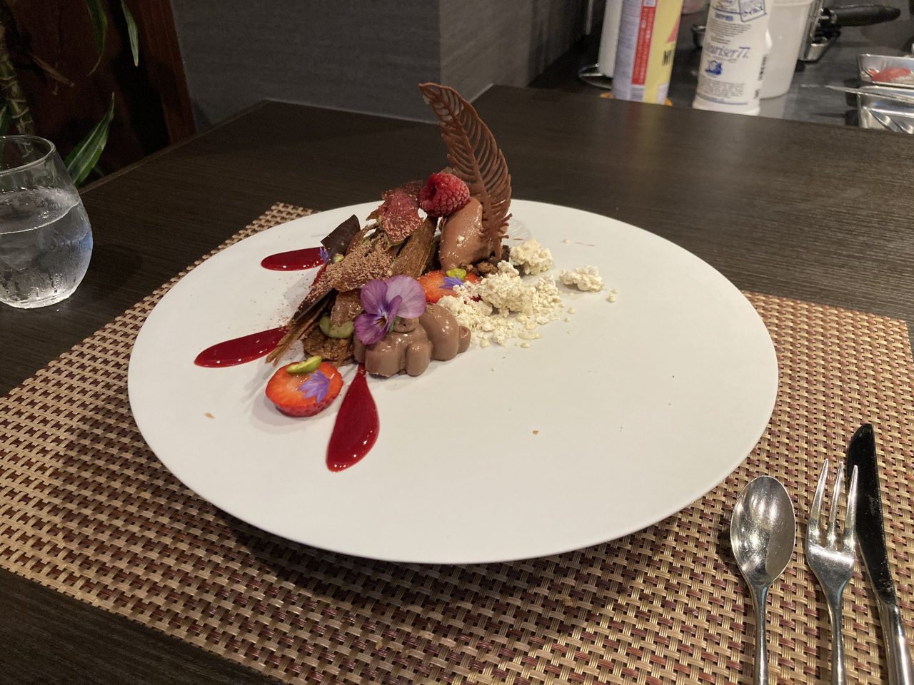 三皿目は、¨ショコラの欲望¨と題して、フランボワーズ、いちご、ピスタチオ、チョコレートのこれでもかといわんばかりのチョコレート祭りのような、思う存分チョコを味わえる一皿でした。