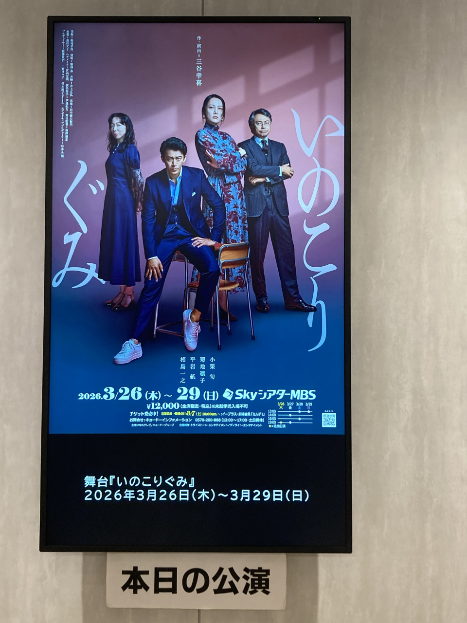 さて、私は週末、大阪へ、¨いのこりぐみ¨という舞台演劇を見に行きました。
