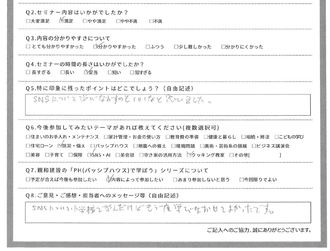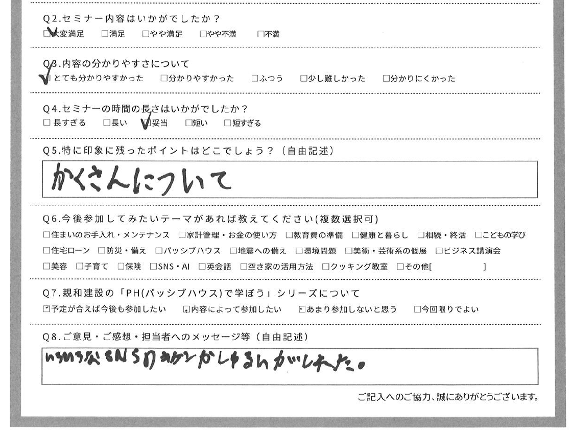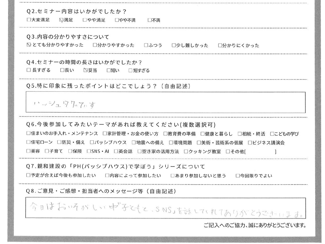 建築会社がSNSの話をイベントとして、地域のみなさんにするのは、ちょっと変に見えるかもしれませんが、住まいも、お金も、教育も、健康も、環境も全てつながっている。