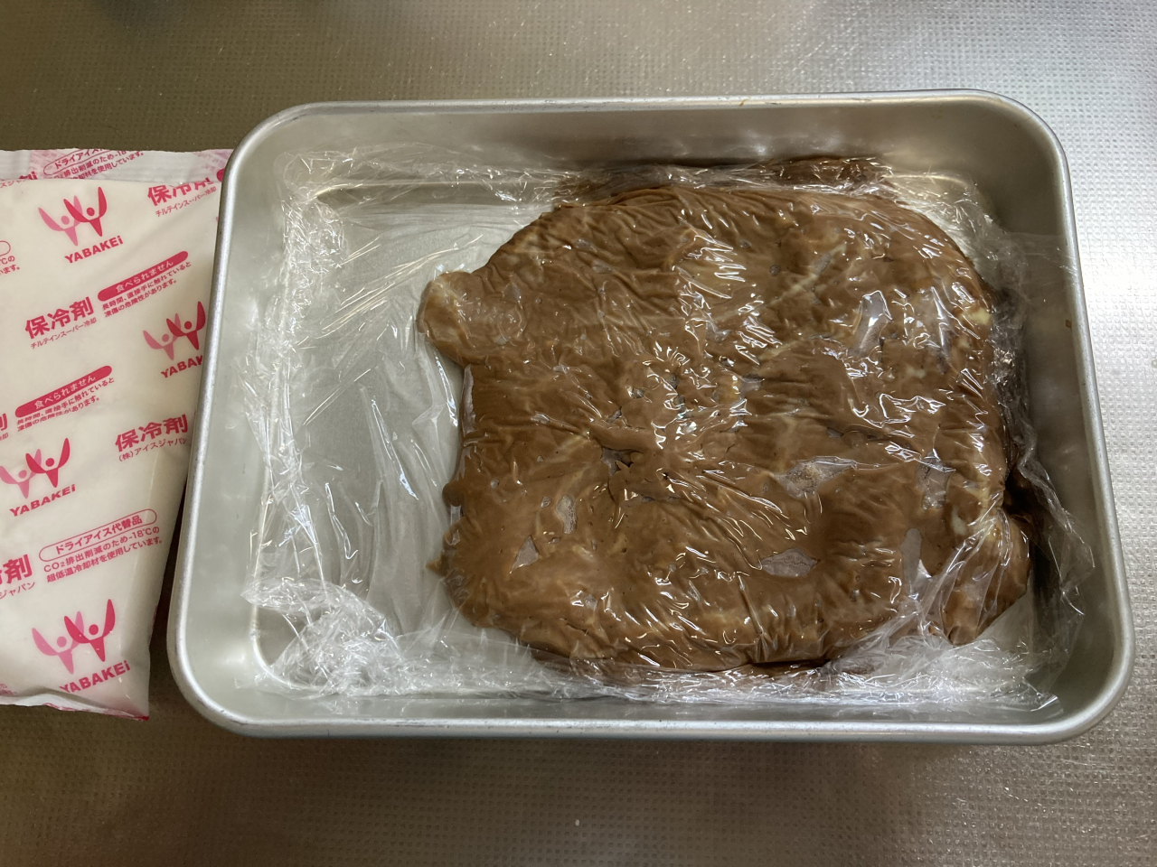 ぴったりとラップをし、保冷剤で挟んで急冷します。
