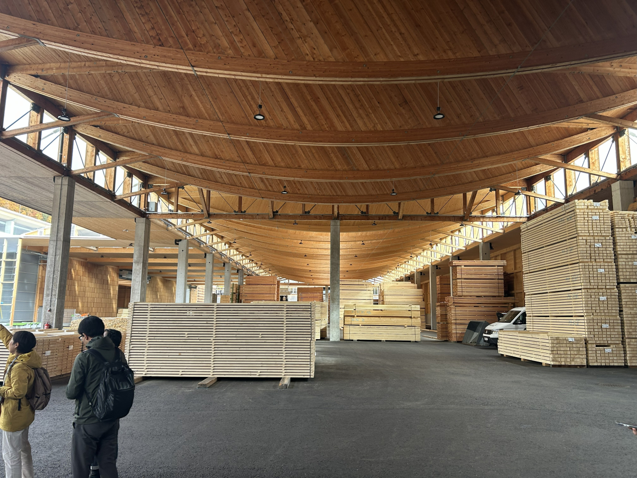 ここではいかに素材を魅せるか、そして接着剤を極力使わない木造技術について説明を受けました。