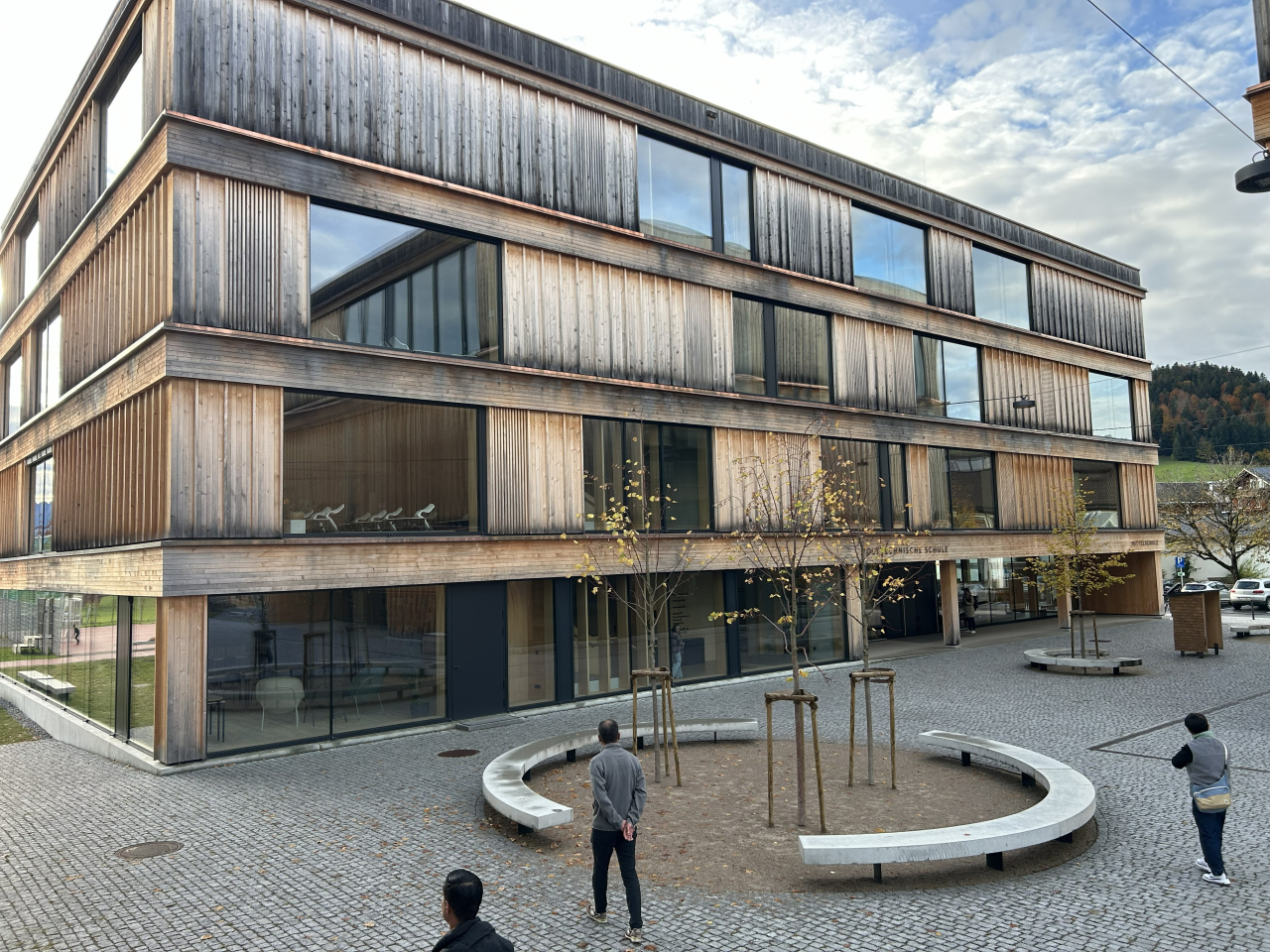 その後ヒッティサウ村へ戻り、コンペを経て4〜5年前に改修された学校建築を見学しました。