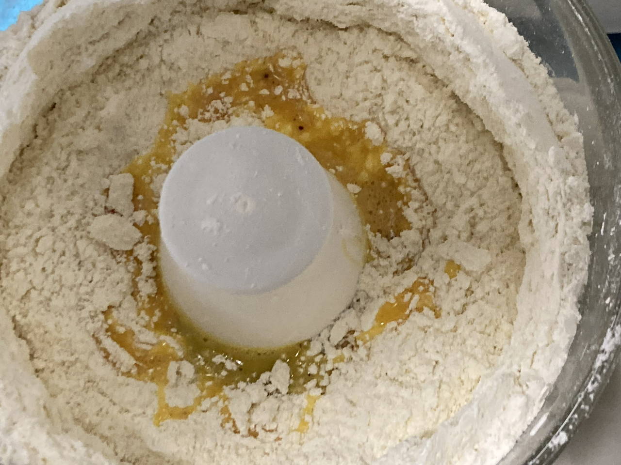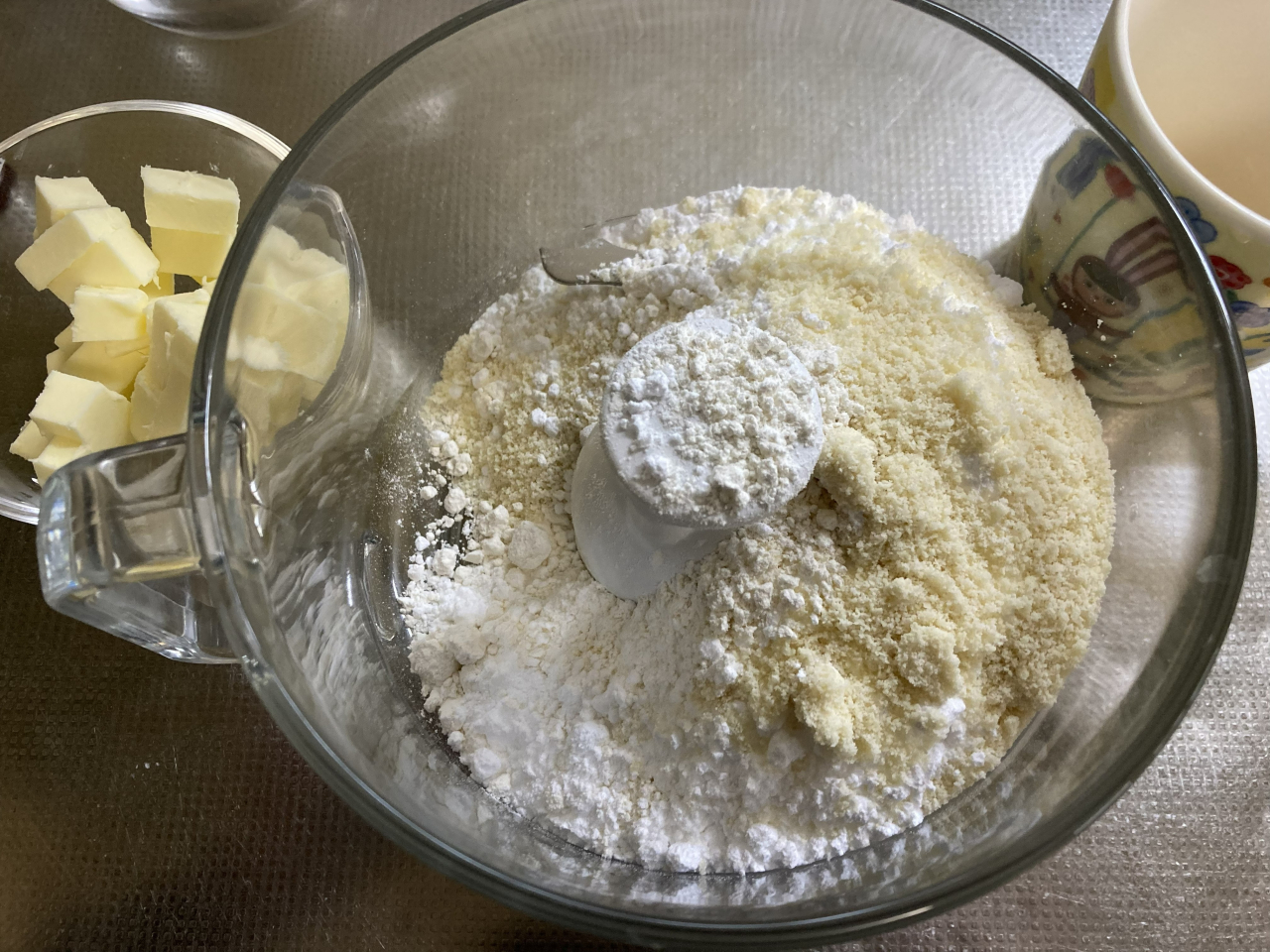 まず、ピンク色のクッキーの材料をフードプロセッサーで順に混ぜていきます。