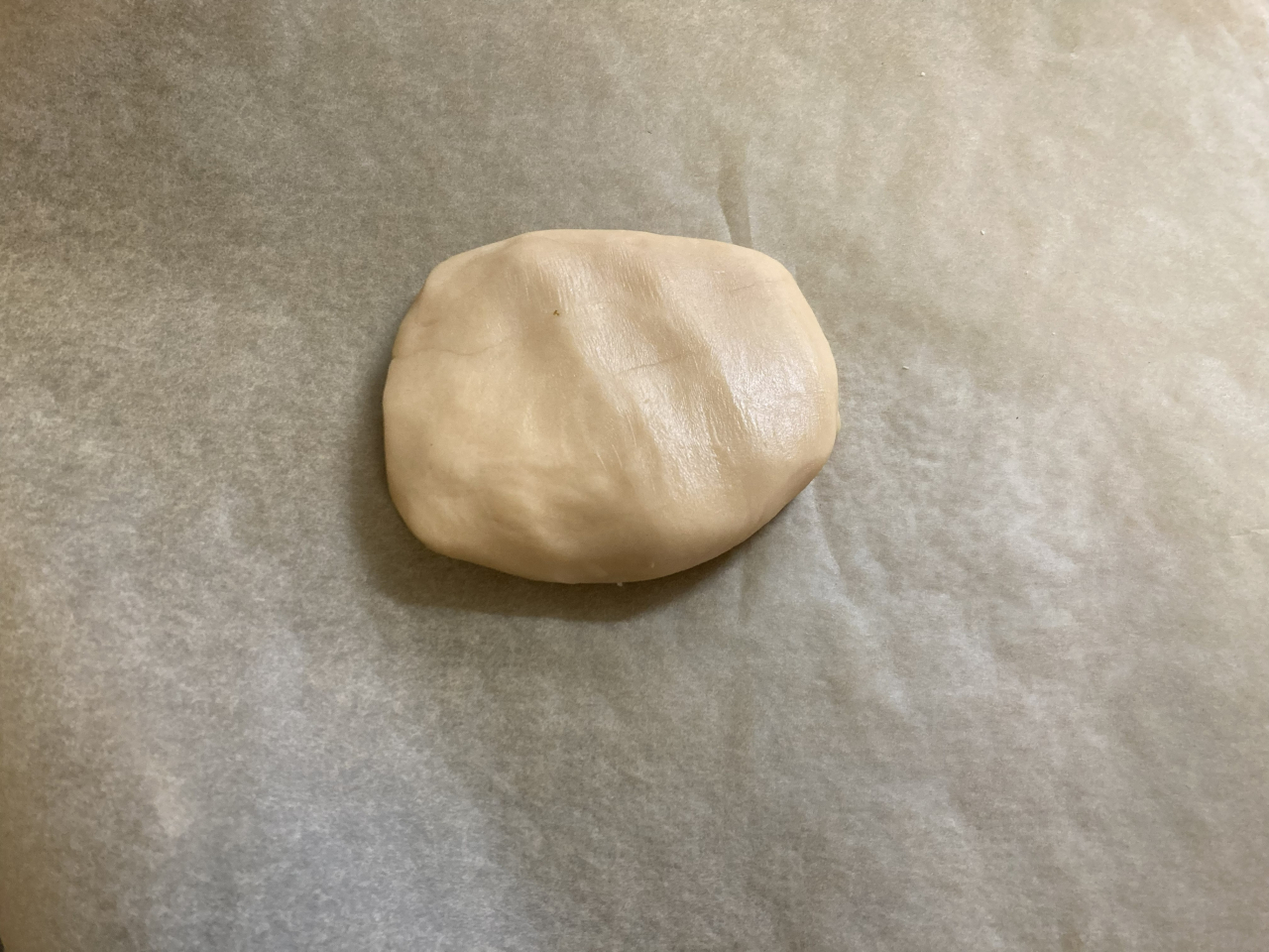 塊になったら、オーブンシートで挟み、めん棒で薄く伸ばし、冷凍庫で少し休ませます。