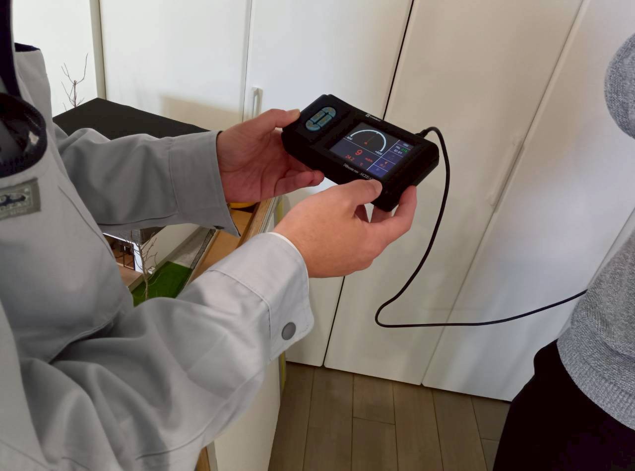 ちなみに今回、再検査をする理由は何か指摘やチェックが入ったとかではなく、完成から半年以上経ち、建物と設備がある程度馴染んだ頃にもう一度確かめようと、お世話になっている高松のプラン・リーブルの高岡利香さんからの提案で実施しました。