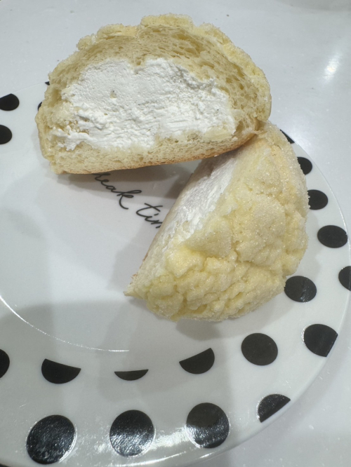完全に冷めたメロンパンの側面に穴をあけ、そこから先ほど作ったミルククリームを絞って、冷蔵庫で冷やして完成です。