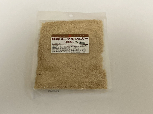 これは、メープルシロップ(サトウカエデなどの樹液を凝縮した甘味料)を煮詰め水分をとばして粉末状にしたものです。