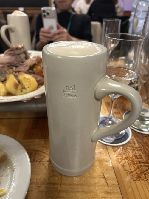 ちょっとした豆知識ですが、この0.5Lのラインより上まで注ぐというルールになっており、下回ると法律違反になるそう。結果少し上まで注がれています!