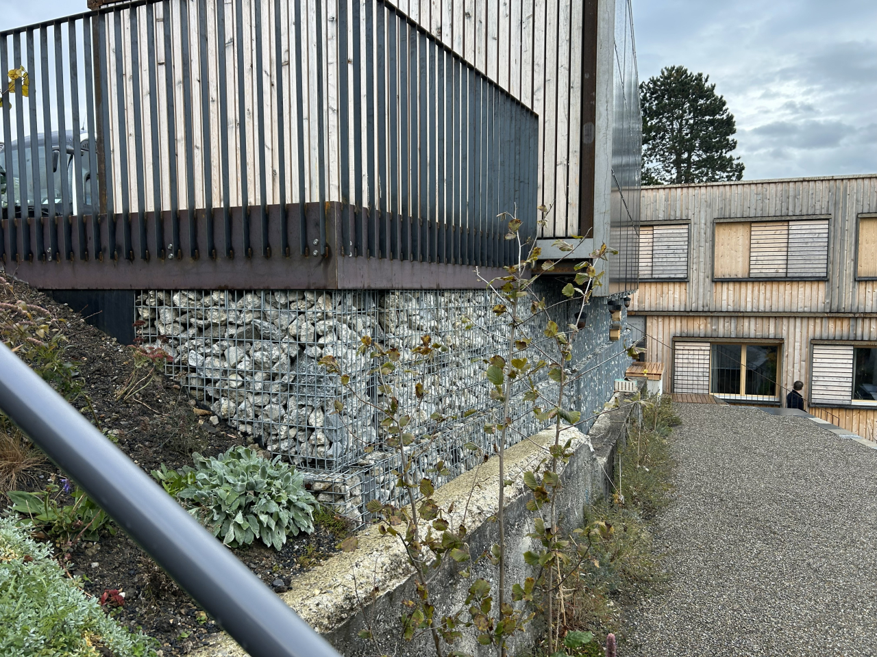 このレンガブロックに関しては、強度試験も連邦の試験場で実施しており、念の為構造材としては使っていないものの、「構造に使える」という試験結果は得ているというから驚きです。さらに続けると、
