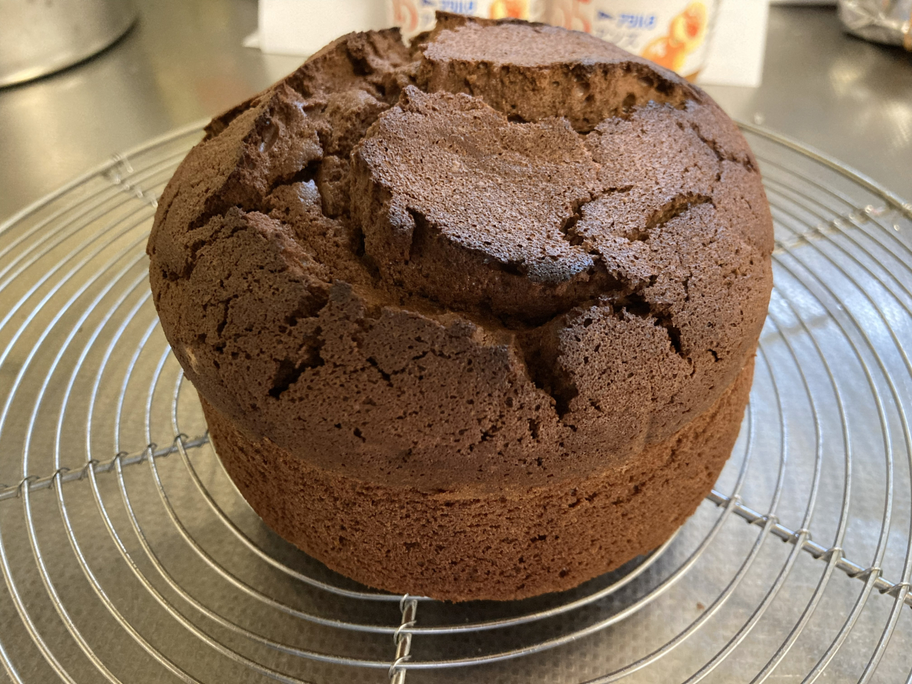 12cmの丸型で焼いていくのですが、板チョコ3枚分の重さのチョコレートが入った濃厚なケーキです。