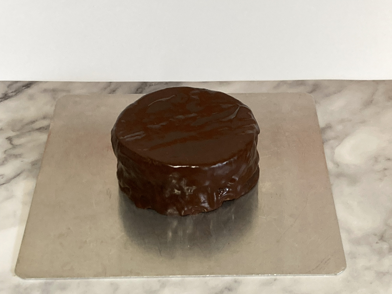 あんずジャムがチョコレートケーキの間と表面にかかっていて、更にチョコレートで全体をコーティングしたケーキです。