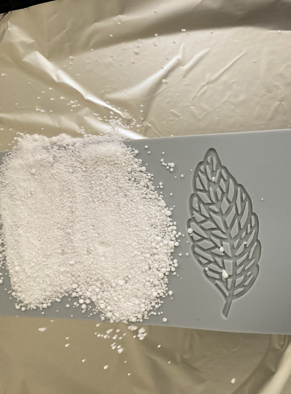 この葉っぱの飴細工の材料は、イソマルトというドイツ製甘味料です。