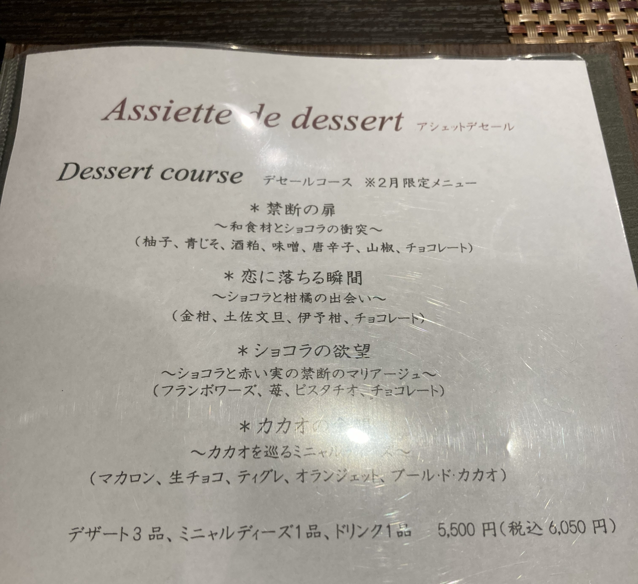 今月はバレンタインデーがあるということで、特別なデセールだそうで、四皿プラスドリンクのコースでした。