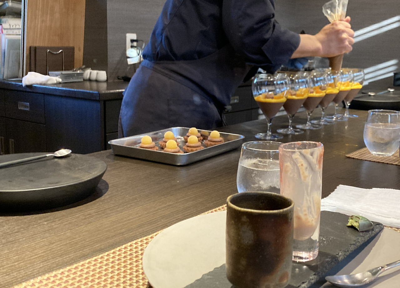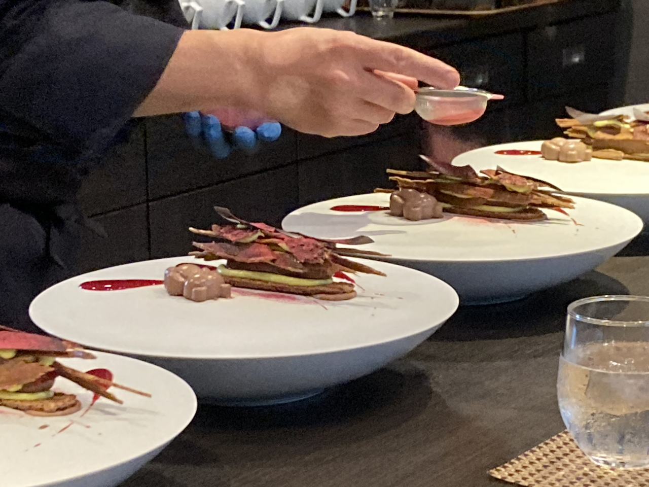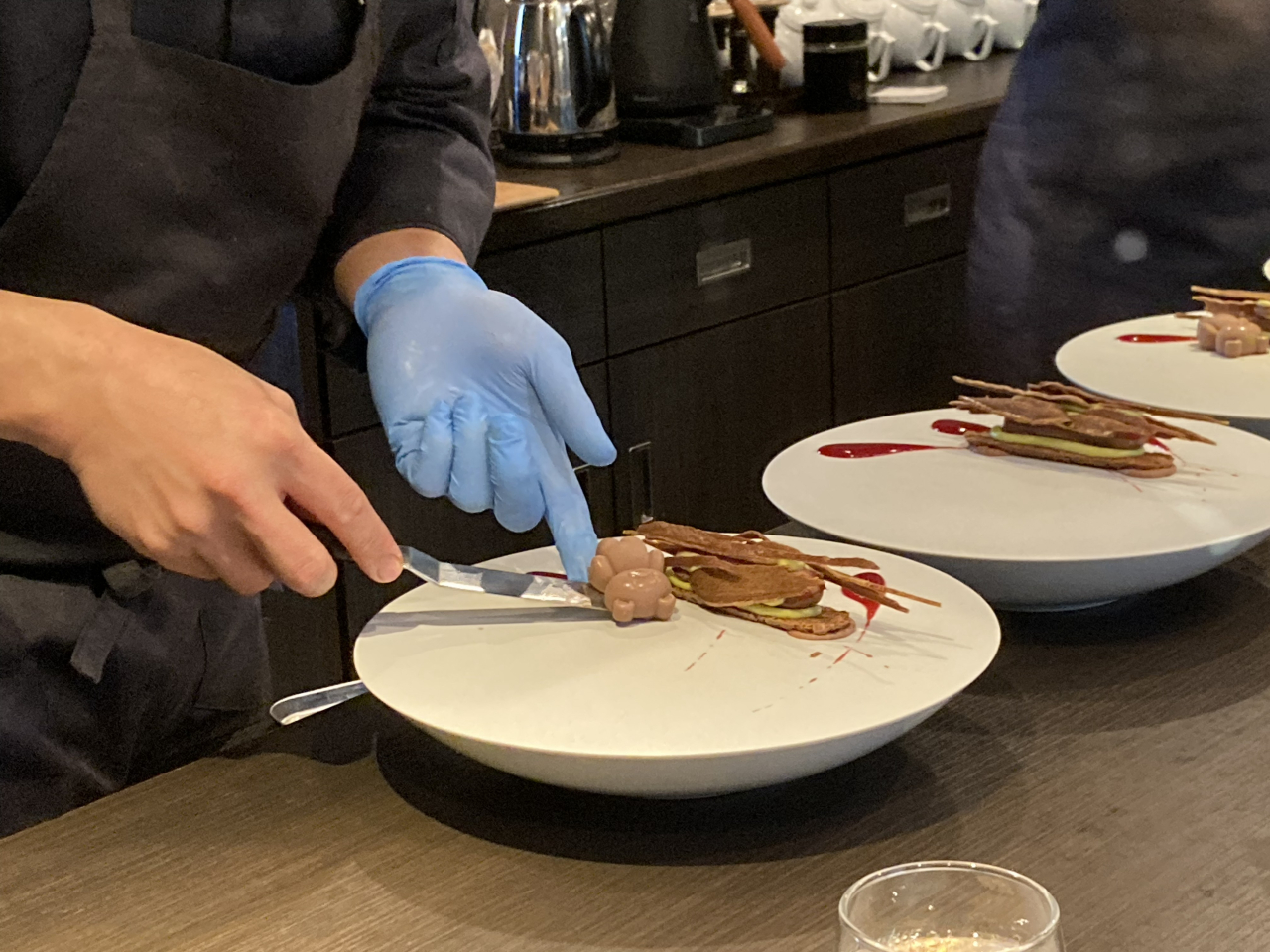 目の前で、シェフの蔭山さんがひとつずつお皿に組み立てていくライブ感を五感で楽しみながら、どんなものが出来上がるのか、大変気持ちが高ぶりました。